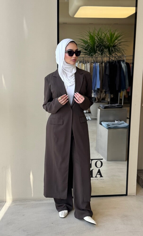 One Button Long Blazer w/ Pants SetX
