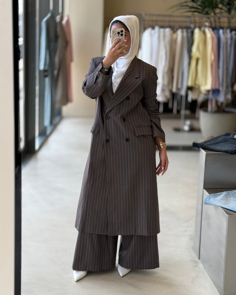 Long Blazer Striped Set 6Buttons