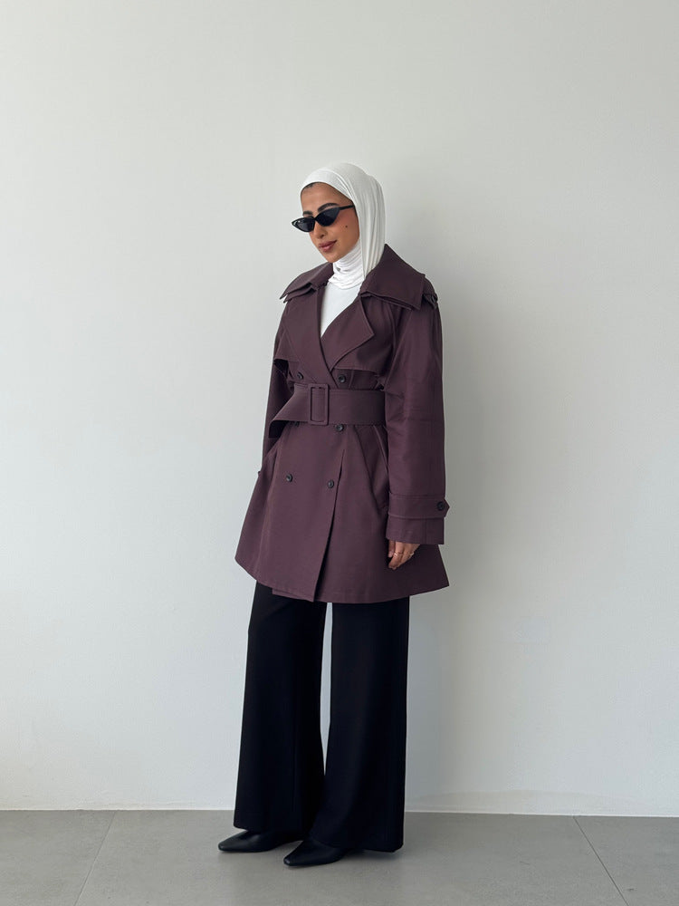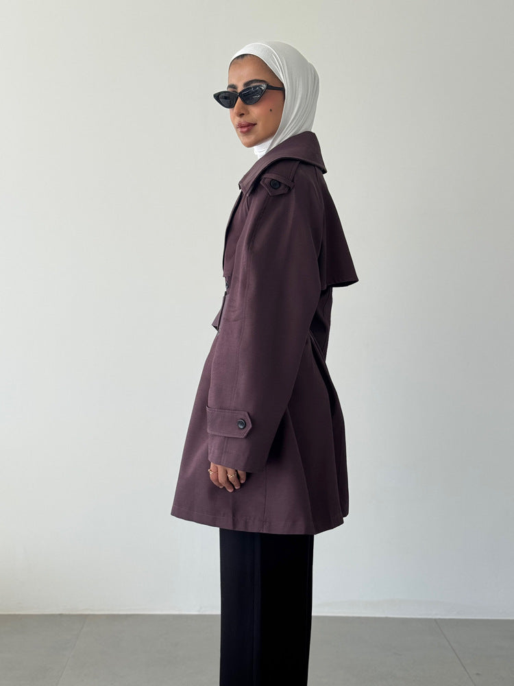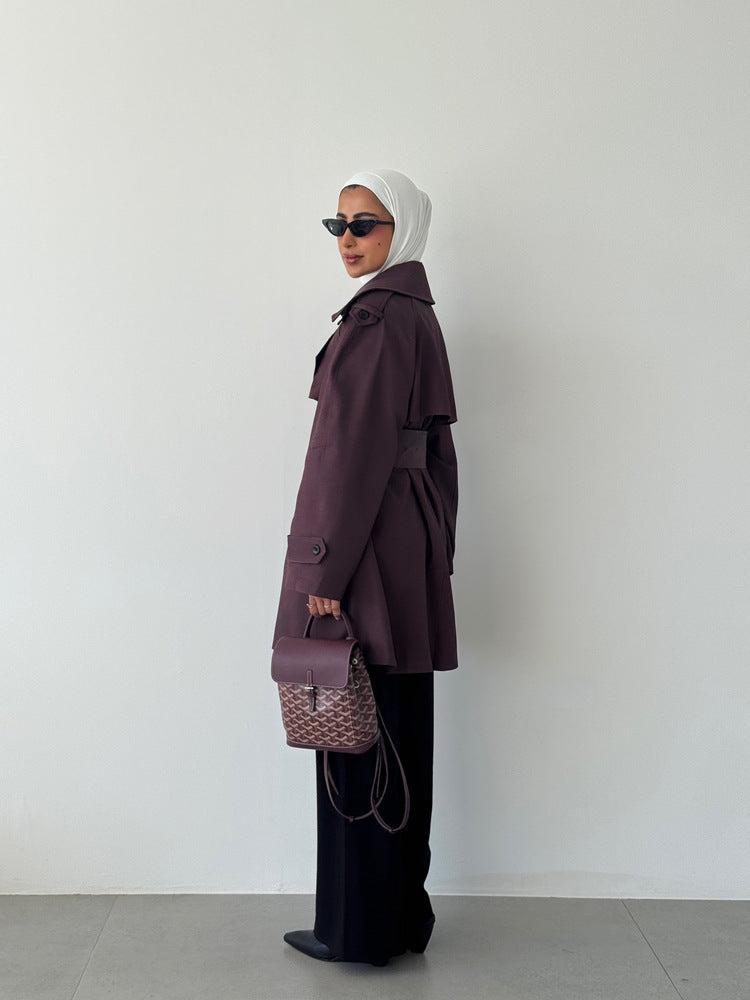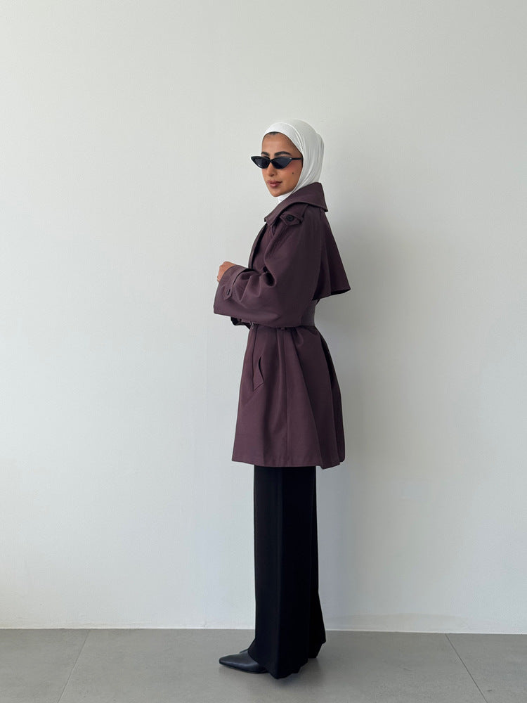 Short Solid Belted Loose Trench Coat