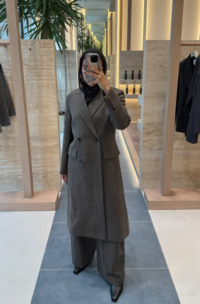 Woolen Coat Double Breasted 2PC